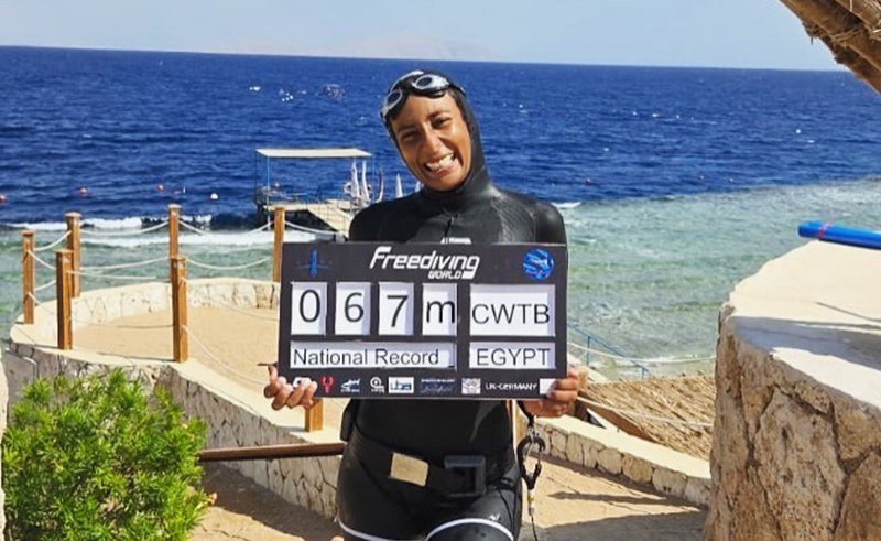 الغواصة الحرة والمدرِّبة المصرية رنالينا عالم شاركت مؤخرًا في كأس العالم للغوص الحر اللي اتعمل من 15 لـ 22 أكتوبر 2025، ضمن فعاليات "Freediving World"، وقدرت تحقق نتائج مميزة في يومين بس من المنافسات. رنالينا حصلت على ميداليتين برونزيتين، وكمان سجّلت رقمين قياسيين مصريين جديدين: - 71 متر في فئة الوزن الثابت باستخدام الزعنفة الواحدة (Monofin) - 67 متر في فئة الوزن الثابت باستخدام الزعانف الثنائية (Bifins). بالأرقام دي، تعتبر أعمق غواصة عربية، وتالت أعمق غواصة في إفريقيا.  "رنالينا" بتتدرب مع المدرب بوريس سباييتش، وبتشتغل كمان مع مدرب معادلة الضغط سيف أسامة، اللي حقق هو كمان إنجاز في نفس البطولة بعد ما غطس 80 متر في فئة الـ Free Immersion، وبقى تاني أعمق غواص مصري في الفئة دي. وبجانب البطولات، رنا شغالة كـ مدرّبة رئيسية، وبتقدّم ورش تدريب عن الغوص الحر، تركّز فيها على التوازن النفسي، والوعي بالجسم، والاتصال بالبحر كجزء من أسلوب الحياة الصحي. سنة 2025 كانت سنة قوية جدًا ليها، لأنها حققت 4 أرقام قياسية جديدة باسم مصر: -67 متر في الزعانف الثنائية (CWTB). - 60 متر في الـFIM. - 50 متر في الغطس بدون زعانف (CNF). وفي بطولة العالم في ميتيكاس – اليونان، مثّلت مصر وجابت المركز الـ13 عالميًا والمركز السادس في تخصصها الأساسي. بعيد عن المنافسات، رنالينا مدرّبة معتمدة، وبتنظم ورش تدريب في مصر وبرّه، تركّز فيها على التحكم في النفس، وتنظيم الجهاز العصبي، والهدوء الذهني أثناء الغطس. رنالينا بتقول إن الغوص الحر بالنسبالها مش بس رياضة، لكنه طريقة للتعرف على النفس والهدوء والتعامل مع الضغط، وده اللي بتحاول توصله لكل اللي بيتدربوا معاها.