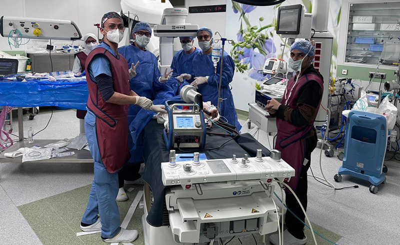 التدخل الطبي تم في غرفة العمليات الهجينة، تحت إشراف فريق طبي بقيادة الأستاذ الدكتور أكرم عبد الباري، والفريق قدر يوصل الجهاز، عشان حالة المريضة تستقر بعد ما قضت شهر كامل على جهاز الإيكمو التقليدي. وبكده تم توصيل تقنية جهاز الإيكمو مباشرة للشريان الرئوي (V-Pa ECMO)، بوحدة الإيكمو بقصر العيني، لأول مرة في مصر.