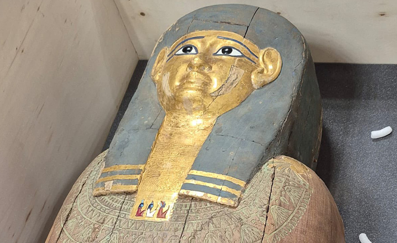 الأستاذ شعبان عبد الجواد، مدير عام الإدارة العامة للآثار المستردة والمشرف على الإدارة المركزية للمنافذ الأثرية بالمجلس الأعلى للآثار،  قال إن القطع الأثرية المستردة عبارة عن تابوت خشبي مطلي ومذهب من العصر المتأخر، وبيتميز بزخارف دقيقة بتعكس الطقوس الجنائزية وتقنيات صناعة التوابيت في العصر ده، والقطعة التانية لحية خشبية أثرية كانت جزء من تمثال مصري قديم، من عصر الدولة الوسطى، بتمثل نموذج لأحد العناصر الرمزية المهمة في فن النحت المصري القديم.